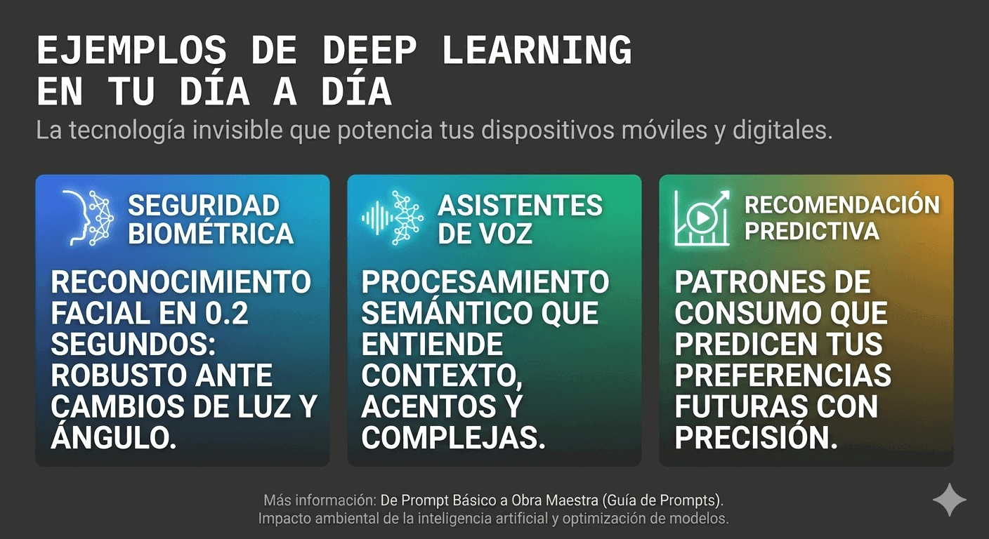 Es probable que interactúes con varios sistemas basados en esta arquitectura antes de terminar tu jornada. Si te preguntas qué es un ejemplo de deep learning capaz de impactar tu rutina, la respuesta suele estar en la comodidad de tus dispositivos móviles y las recomendaciones que recibes en plataformas digitales.
