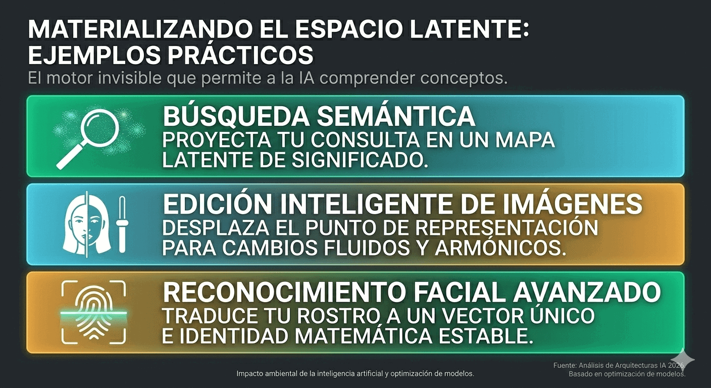 El espacio latente es el motor invisible que permite a la IA comprender conceptos en lugar de solo procesar datos crudos. Estos son sus casos de uso más relevantes: