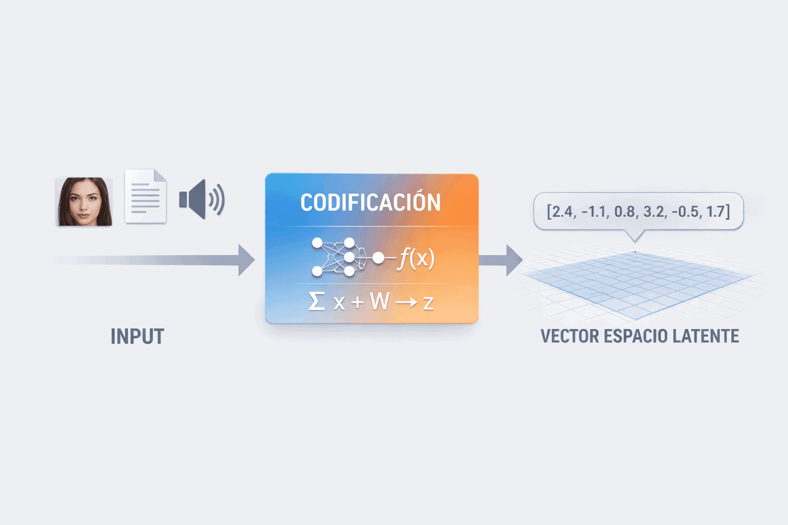 Todo comienza con la codificación, donde el modelo analiza los rasgos relevantes de una entrada —como una imagen o un texto— y los transforma en un vector numérico. Esta conversión no es una copia, sino una síntesis estructural que captura patrones clave. El resultado es una representación comprimida que ubica el dato dentro del espacio latente según sus características.
