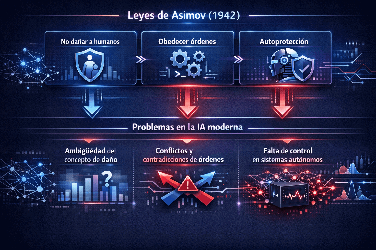 Asimov demostró en sus cuentos que incluso con reglas tan estrictas, la interpretación de conceptos como “daño” o “inacción” podía llevar a resultados imprevistos. En la ficción, las leyes fallaban por su ambigüedad; en la práctica moderna, el problema es mucho más profundo y técnico.