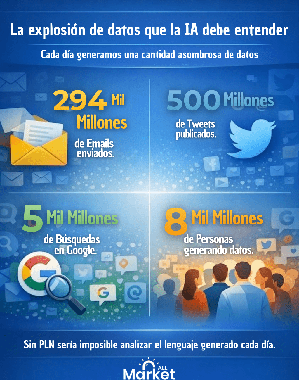 La magnitud del desafío es asombrosa, ya que cada día 8 mil millones de personas generan una huella digital colosal. Esto incluye el envío de 294 mil millones de correos electrónicos, la publicación de 500 millones de tweets y la realización de 5 mil millones de búsquedas en Google en una sola jornada. Hasta hace poco, las máquinas percibían este océano de datos como una serie de caracteres sin sentido.