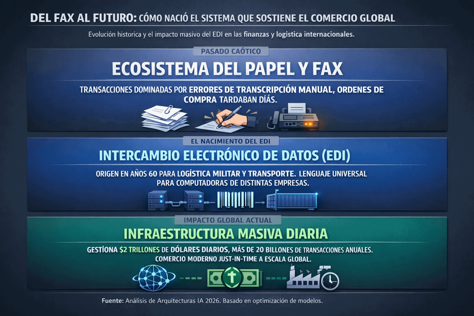 El Intercambio Electrónico de Datos (EDI) ha demostrado ser mucho más que una tecnología de comunicación; es el lenguaje fundamental que permite la existencia del comercio global hiperconectado.