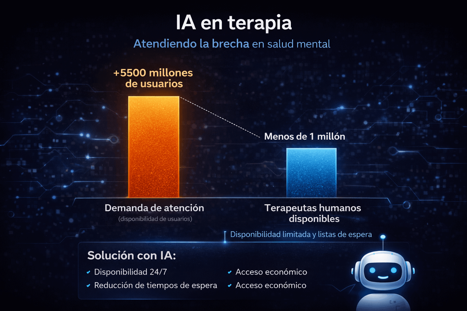 Si bien la tecnología presenta desafíos éticos y limitaciones en la profundidad del vínculo afectivo, su capacidad para democratizar el acceso a la salud mental es innegable.